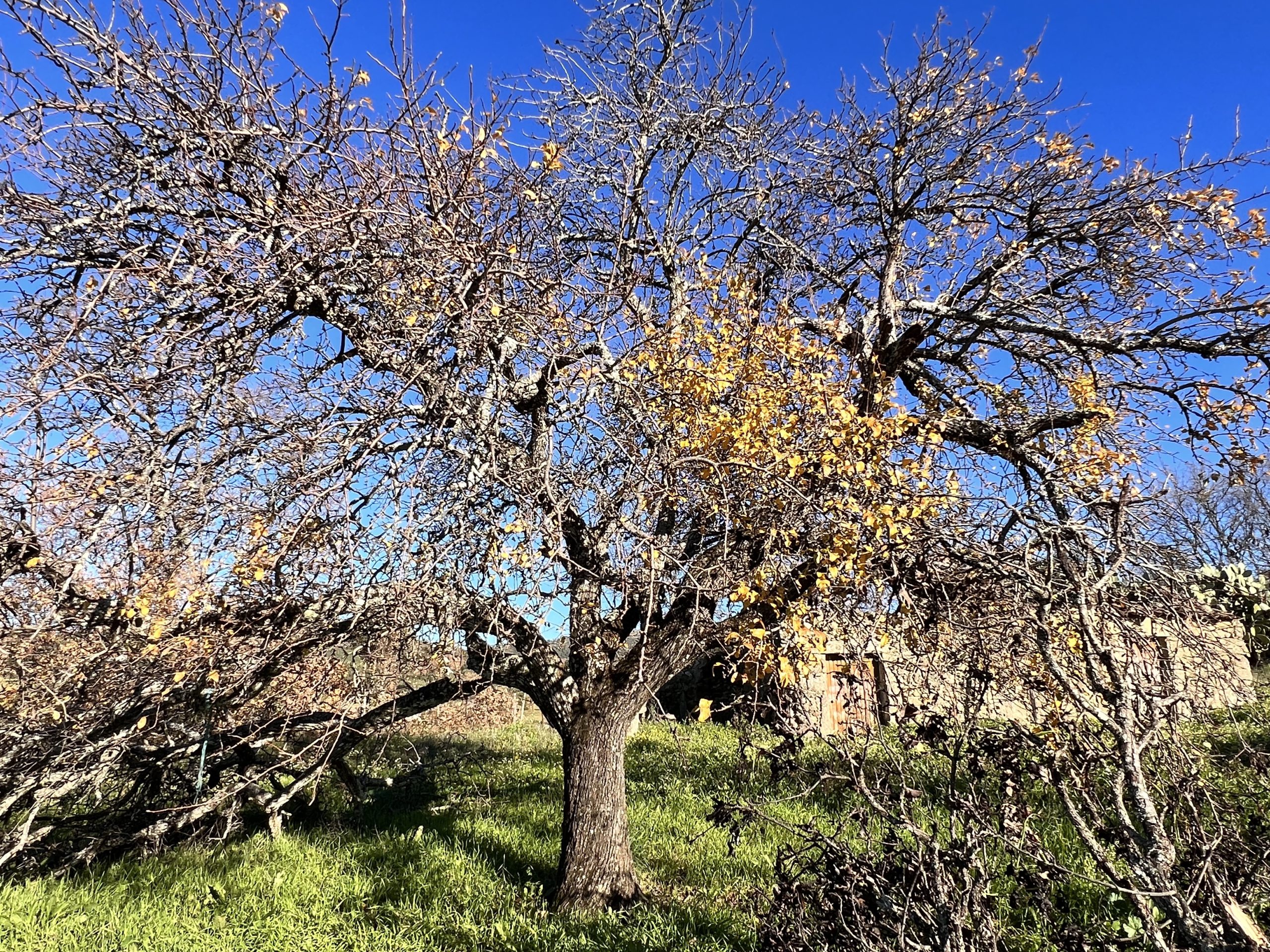 A few fruit trees are on the property, such as a large pear tree, nespera, apple, and a few more.