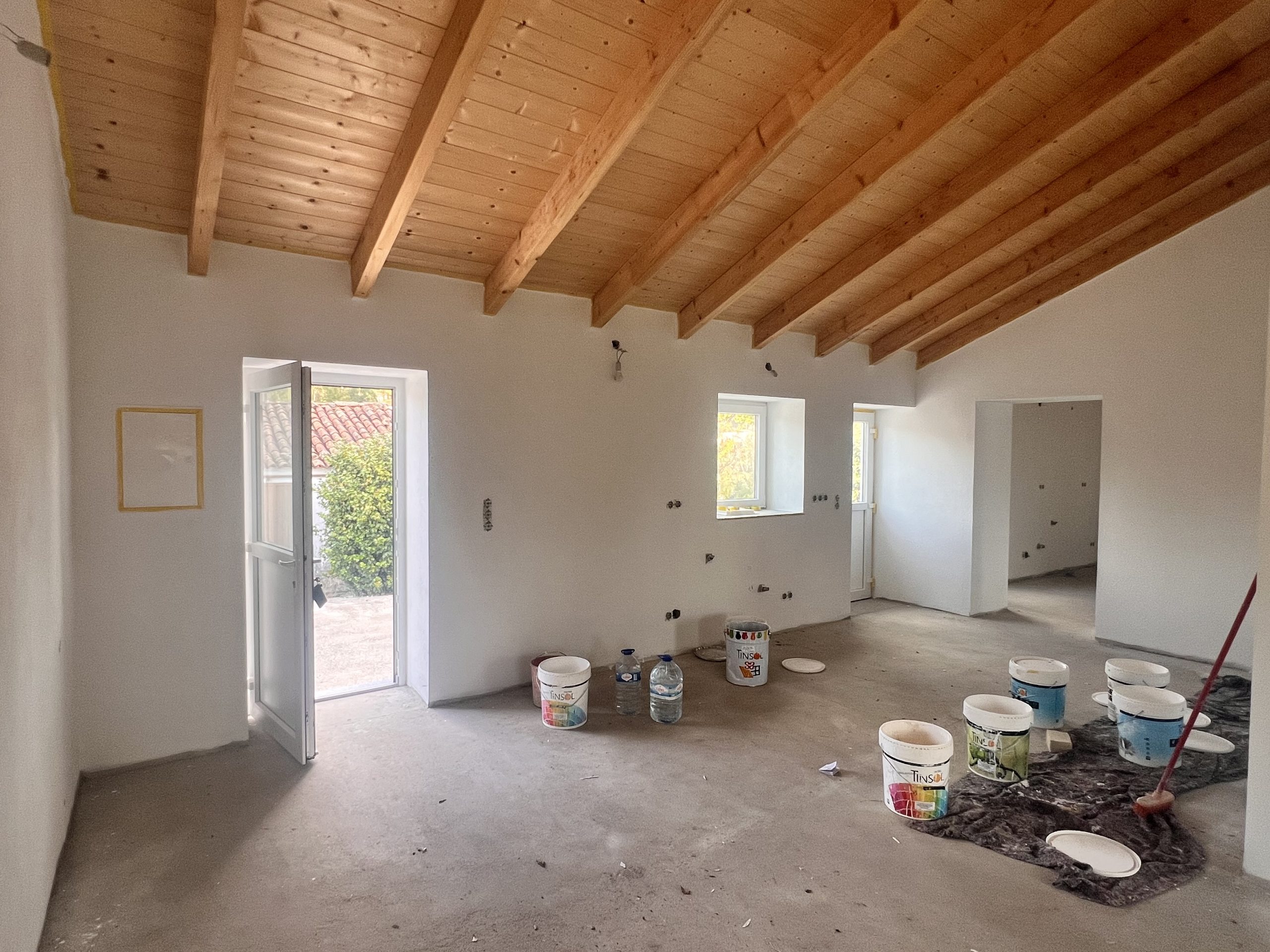 Der Innenausbau wurde noch nicht abgeschlossen und kann somit nach eigenem Geschmack und mit wenig Aufwand wohnfertig gemacht werden. Es geht dabei hauptsächlich um die Bad-Armaturen, Innentüren, Böden und Küchen.