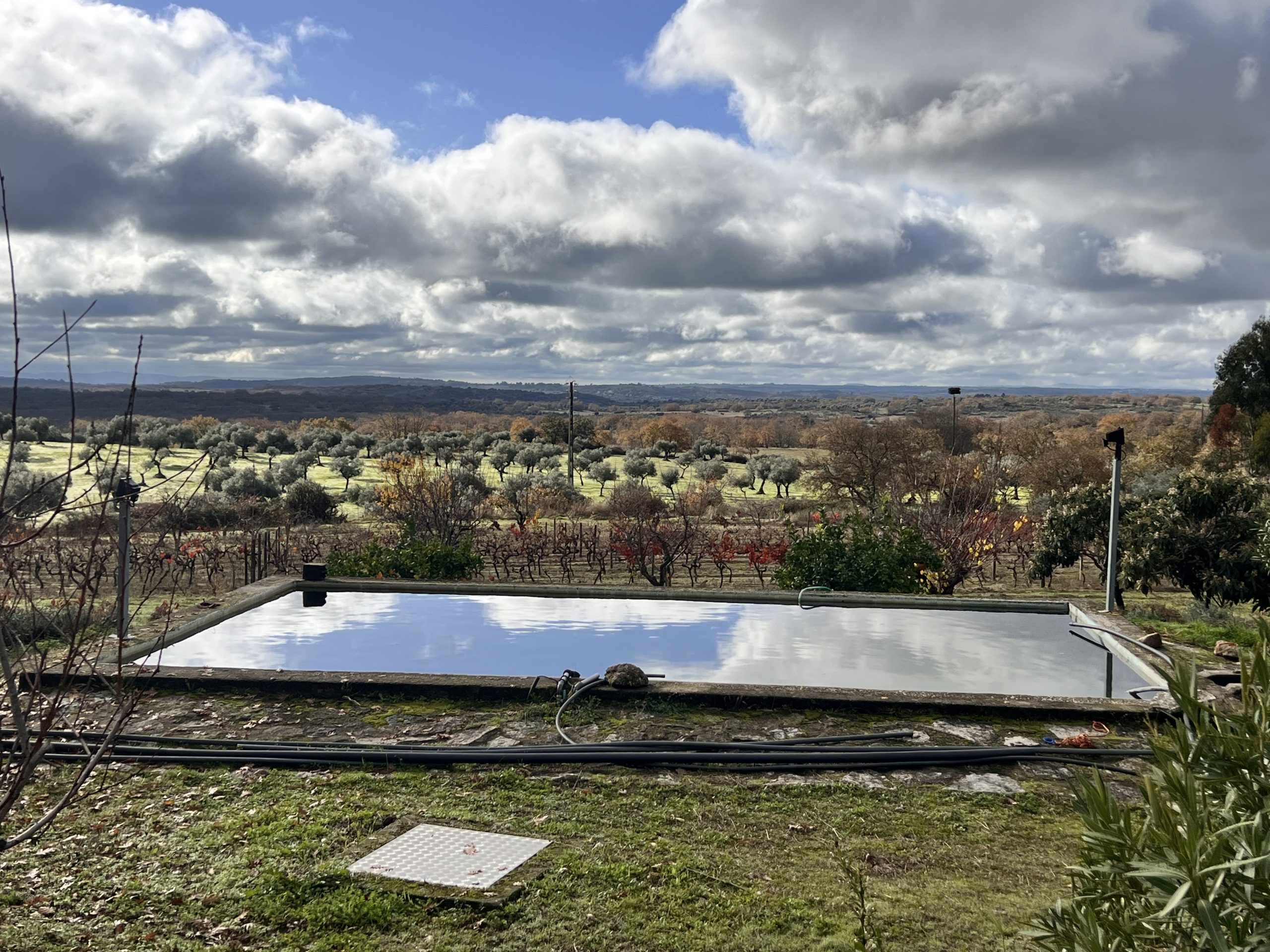 Der Wassertank hat eine Speicherkapazität von 70.000l und wurde so konzipiert, dass er leicht als Swimming Pool umgerüstet werden kann (wurde schon als solcher genutzt). Zwei eigene Bohrlöcher versorgen Land und Haus mit ganzjährig reichlich Wasser.