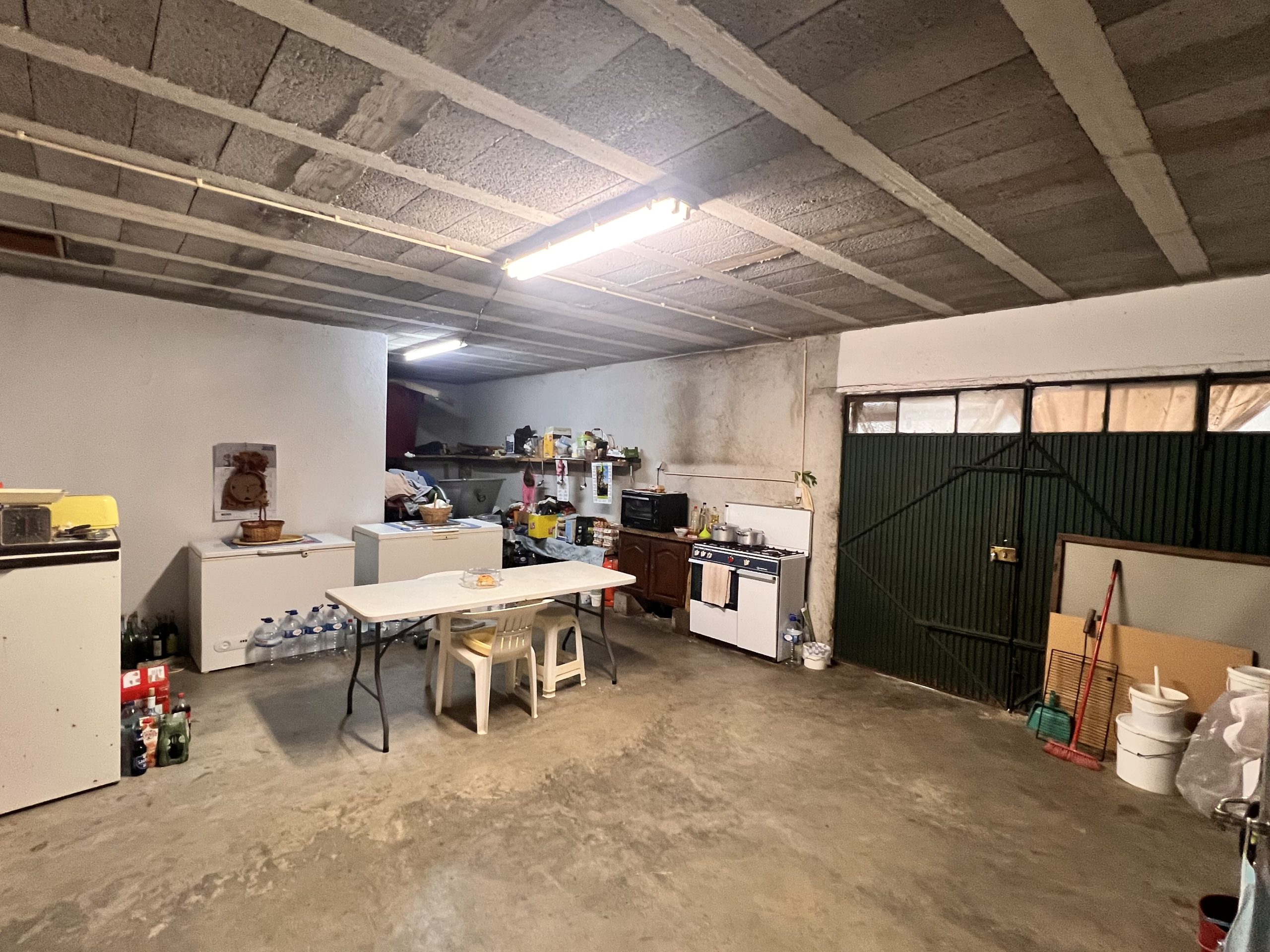 Es gibt ein einzugsbereites, ebenerdiges Wohnhaus im landestypischen Stil mit grosser Wohnküche mit offenem Kamin, Bad, 2 Schlafzimmern, Garage und Keller. Vor dem Haus lädt ein grosser Steintisch zu gemütlichem Zusammensein. Die Trinkwasserversorgung kommt aus dem eigenen Bohrloch; ganzjährig massenweise kühles und reines Grundwasser.